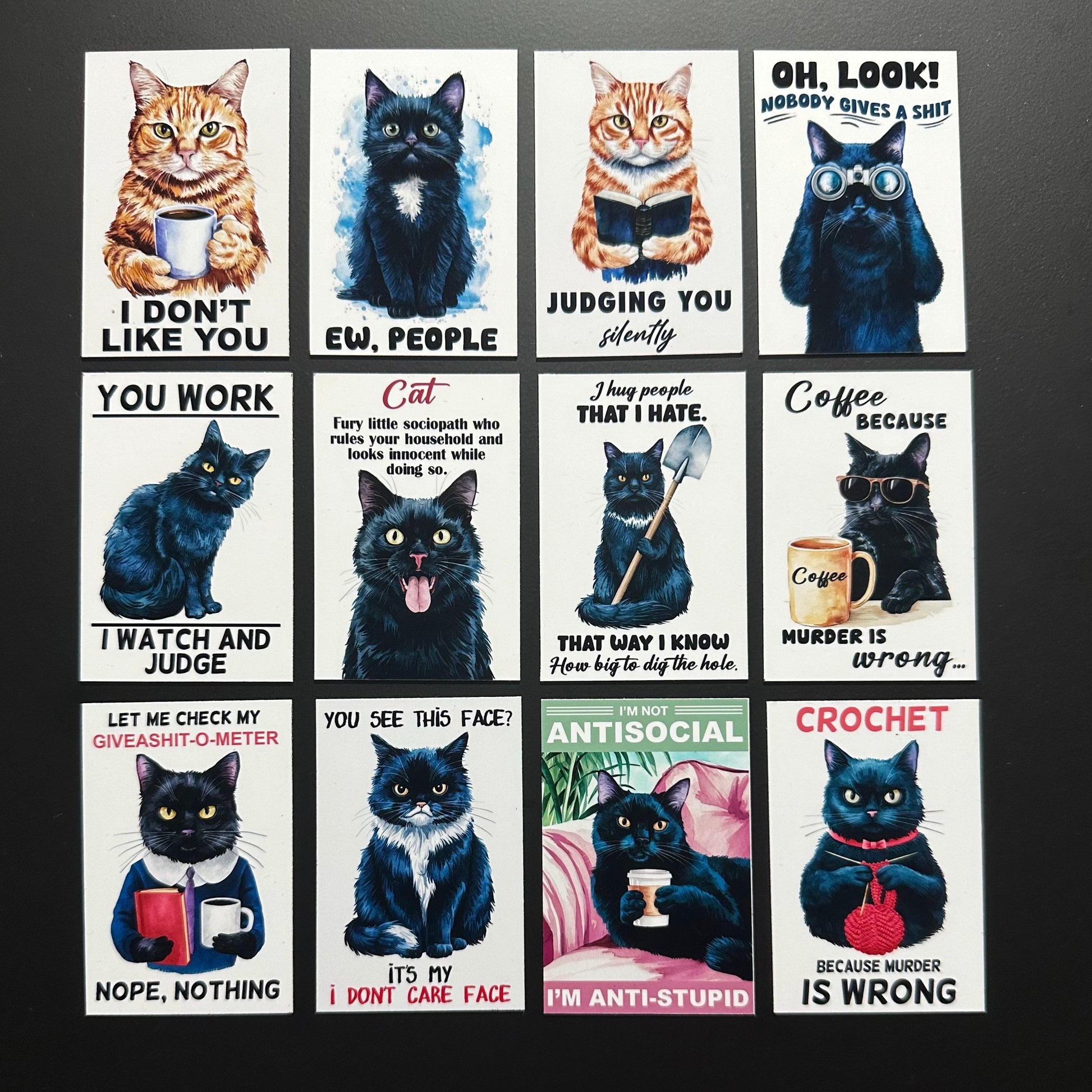 Masz poczucie humoru (albo po prostu koci charakter)? Ten zestaw 12 magnesów z kotami to idealny dodatek do Twojej lodówki, tablicy magnetycznej czy biura! 😺